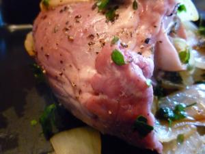 Notably this is the first Les Halles recipe calling for rosemary I have come across. While my parsley, bay tree and thyme have been providing in almost every dish so far, my rosemary and oregano has been left to flourish..