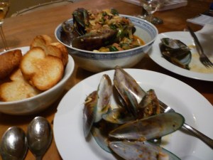Let me tell you a thing or two about Brussels Mussels – not to be confused with ‘The Mussels from Brussels’, a reference to Jean Claude Van Damme [again pointed out by Dan]. Brussels* is about 100km from the ocean, and the mussels they dredge out of the murky English Channel are small, dark shelled and and tasty, but they are nothing on the magnificent large green-lipped mussels that can be found basking in the beautiful waters here in New Zealand, or bought live and very cheaply in the local supermarket.